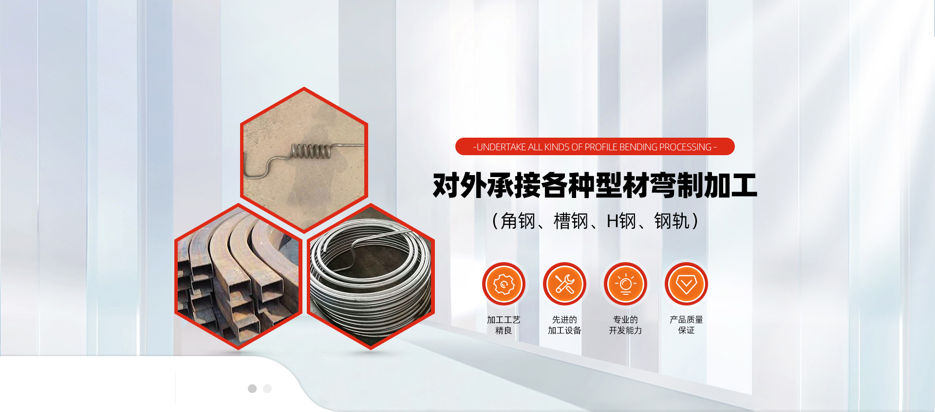 同時(shí)對(duì)外承接各種型材(角鋼、槽鋼、H鋼、鋼軌)彎制加工。